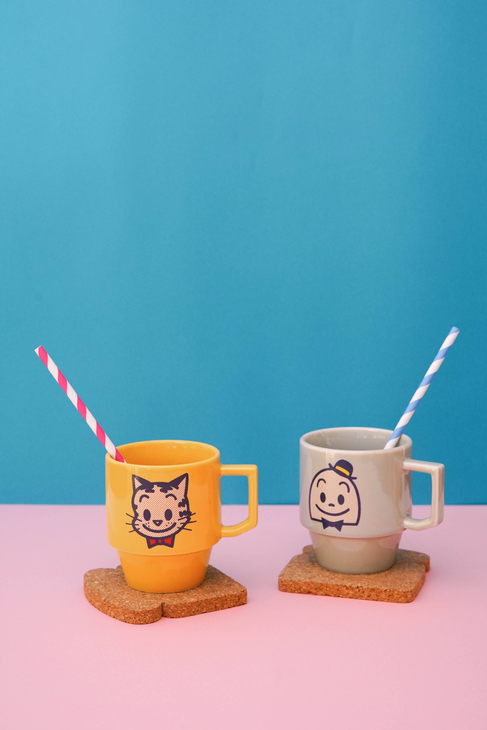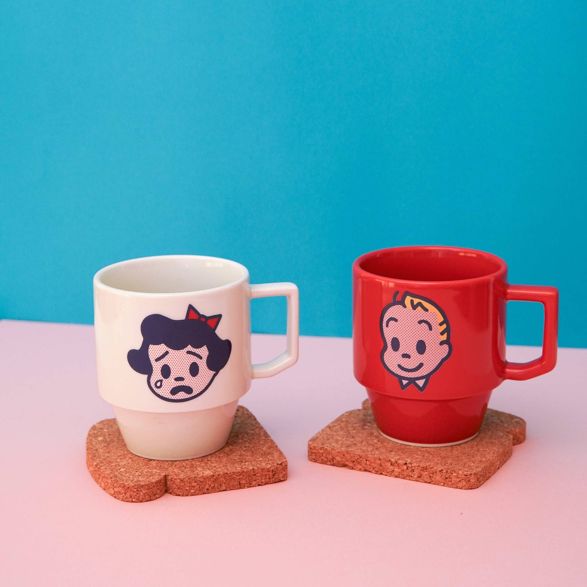 The off-white Hasami glaze keeps everything clean and lets the illustration do the work, the navy and red sitting sharply against it. The halftone print gives it a pop art quality that lifts it well above standard character merchandise. Squat stackable form, angular handle, 300cc capacity, microwave safe, OSAMU logo on the back. A mug for someone who appreciates a little drama alongside their morning coffee.