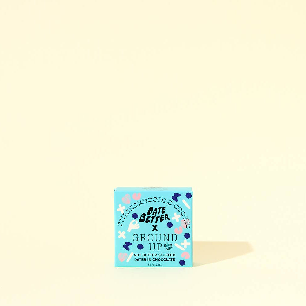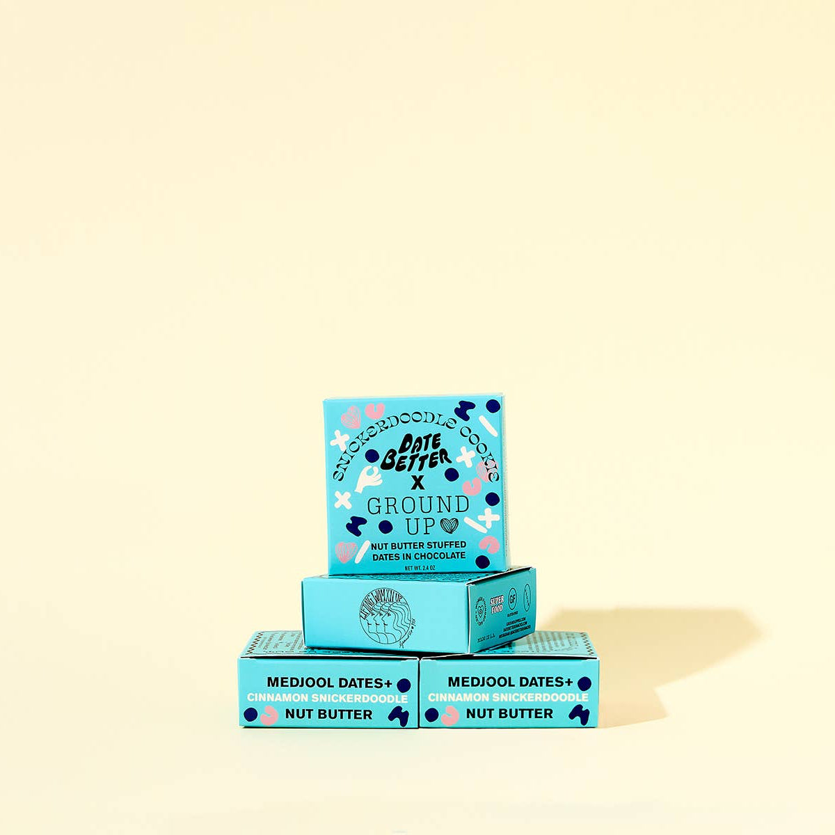 Snickerdoodle Cookie Crunch captures the comfort of festive baking in chocolate form. Medjool dates are stuffed with Ground Up’s Cinnamon Snickerdoodle Nut Butter and pieces of cinnamon-dusted almonds, then dipped in glossy 85% organic fair trade dark chocolate. Warm spice, creamy filling, and chewy sweetness combine in a treat that feels like Christmas in every bite.