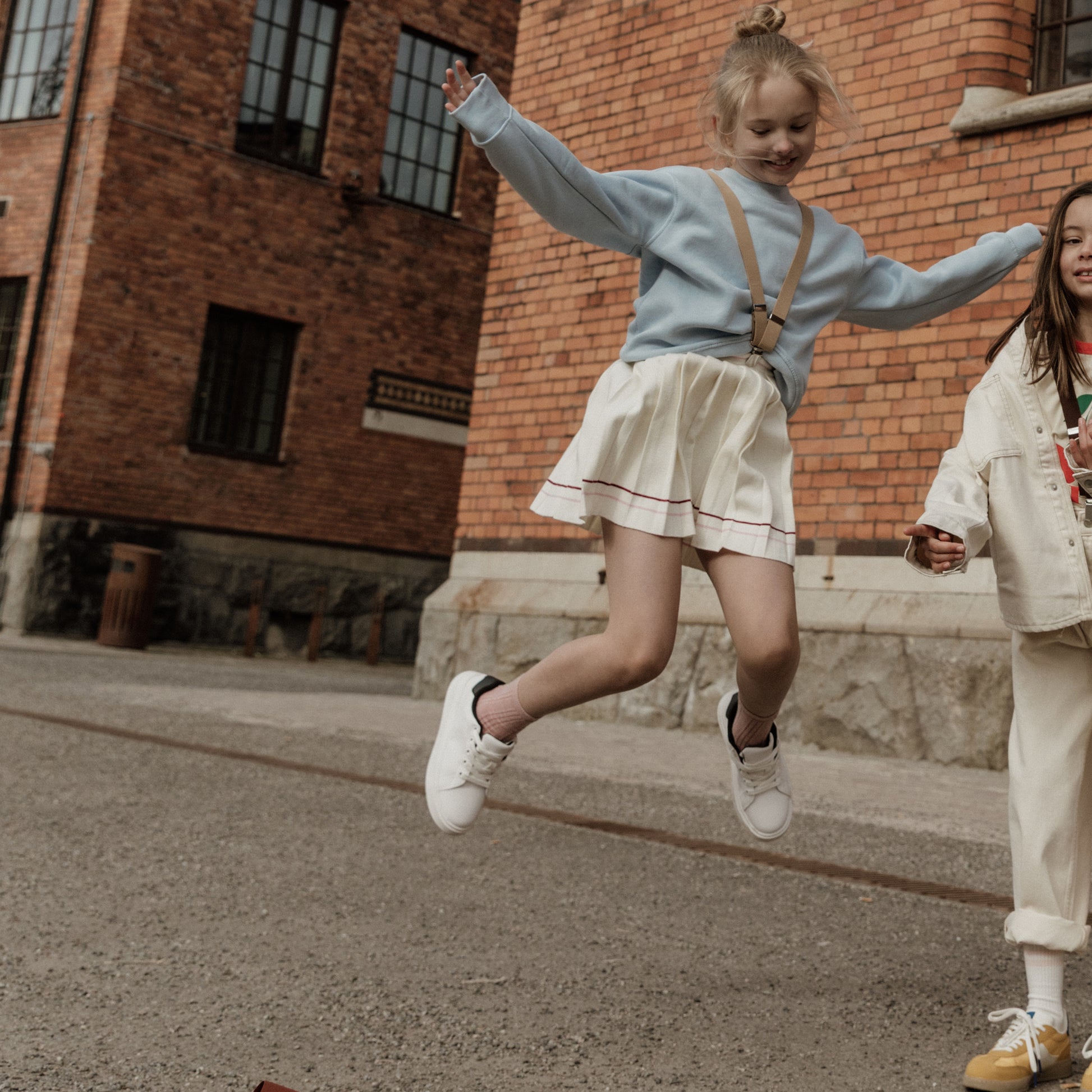 Their unique 2-point “V for Victory” attachment – an internationally registered design – is the first of its kind. The front and back clips gently lift your child’s undergarment to keep things comfy all day long, while allowing full freedom of movement. Designed to grow with your child, they’re adjustable and perfect for ages 4 to 8.
