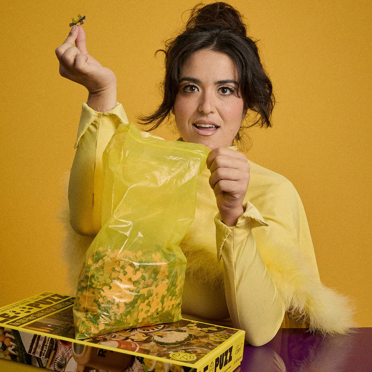 Inside the bright yellow box you’ll find 1000 sustainably made pieces, a reusable resealable bag, and a bonus double-sided poster to help (or distract) you as you piece together the feast.