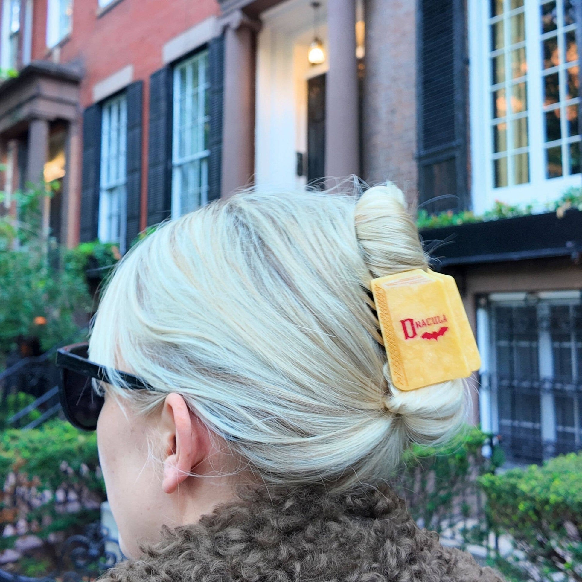 Solar Eclipse have bottled gothic literature and turned it into a hair accessory. The Dracula Mini Book Claw is hand-painted and shaped like a tiny vintage novel, complete with red lettering and a bat motif. It’s camp, it’s spooky, and it’s guaranteed to add drama to even the most everyday hairstyle.