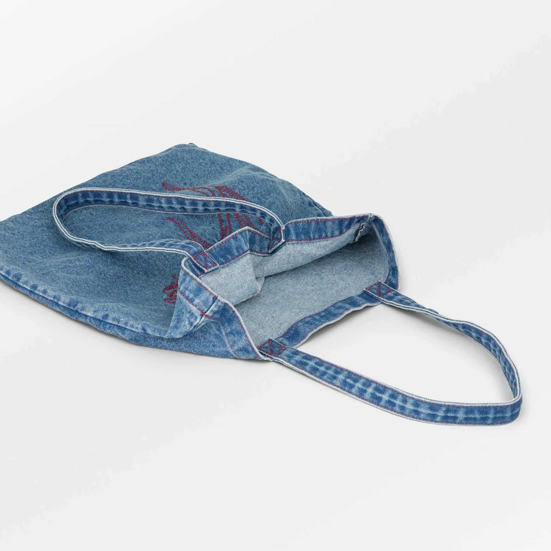 The Tulipa Denima Tote Bag is an easy everyday bag with a bit more personality than your standard canvas carry-all. Made from denim with a stitched tulip motif in contrast red thread, it feels relaxed, familiar, and just different enough to stand out.
