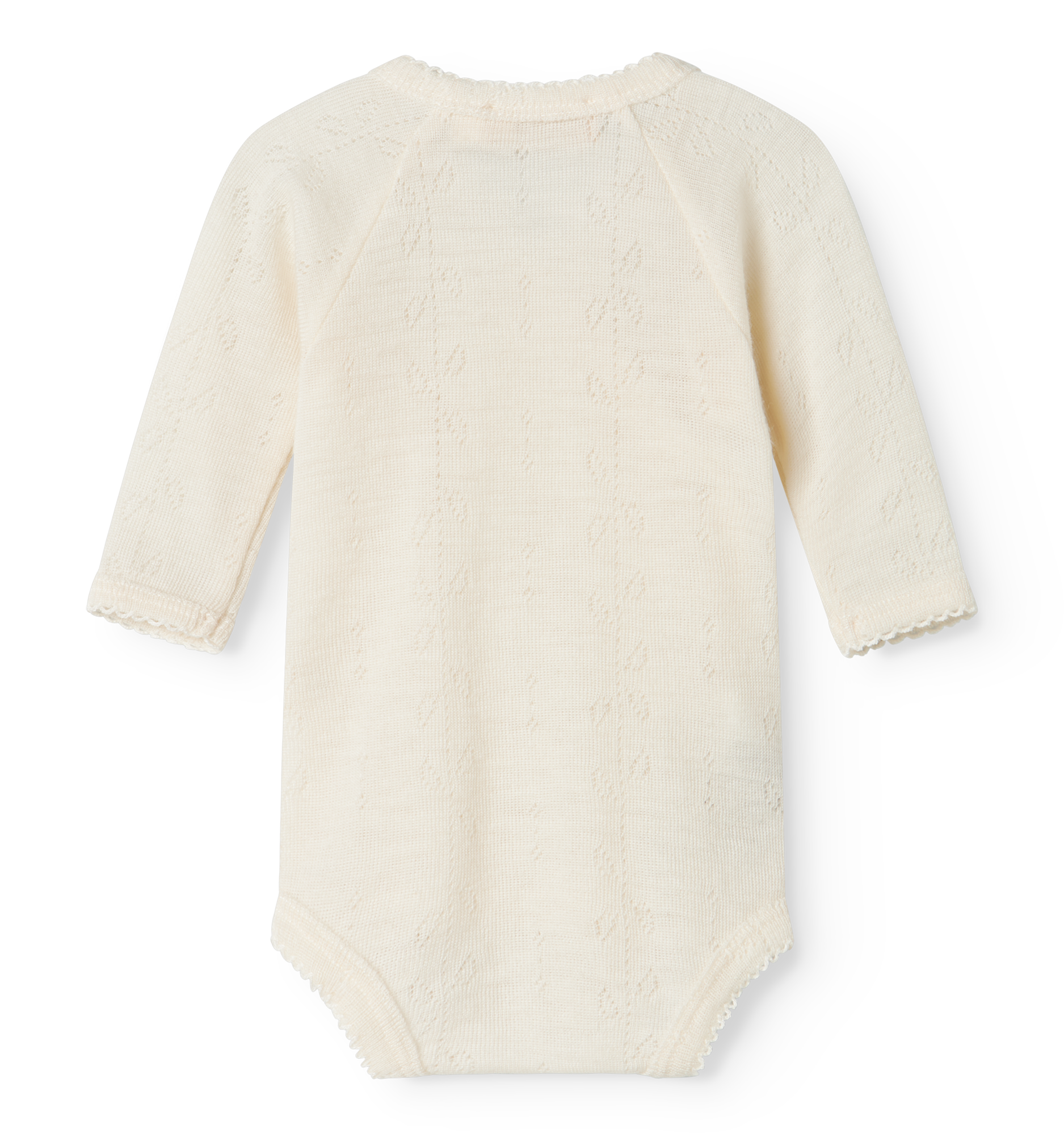 This natural Belita merino wool pointelle body from MarMar Copenhagen is one of those pieces that just works from day one. Calm, soft and genuinely practical, it’s made for real babies and real routines, not just nice photos.