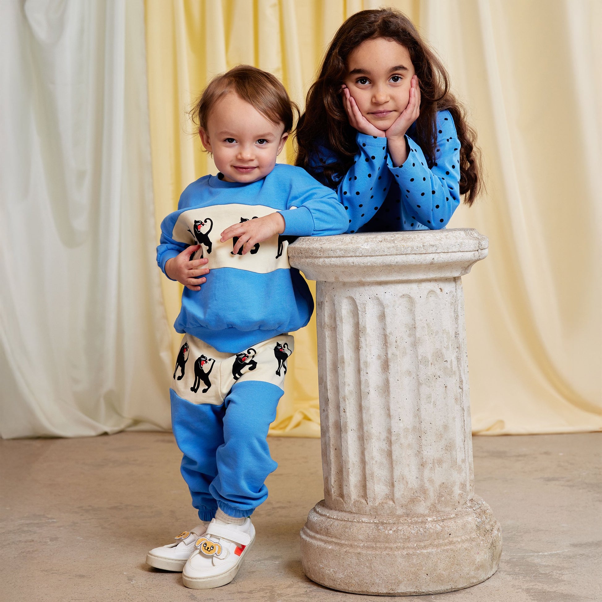 The Panther Panel Sweatshirt is Mini Rodini’s bold, bright reminder that kids’ clothes should be fun without ever compromising on comfort. This season’s update takes a saturated sky-blue base and slices it with a crisp cream panel running straight across the chest, stamped with those unmistakable Mini Rodini panthers — cheeky, confident, and just the right amount of graphic. The result? A sweatshirt that looks like effort, even though it’s the easiest thing in the wardrobe.