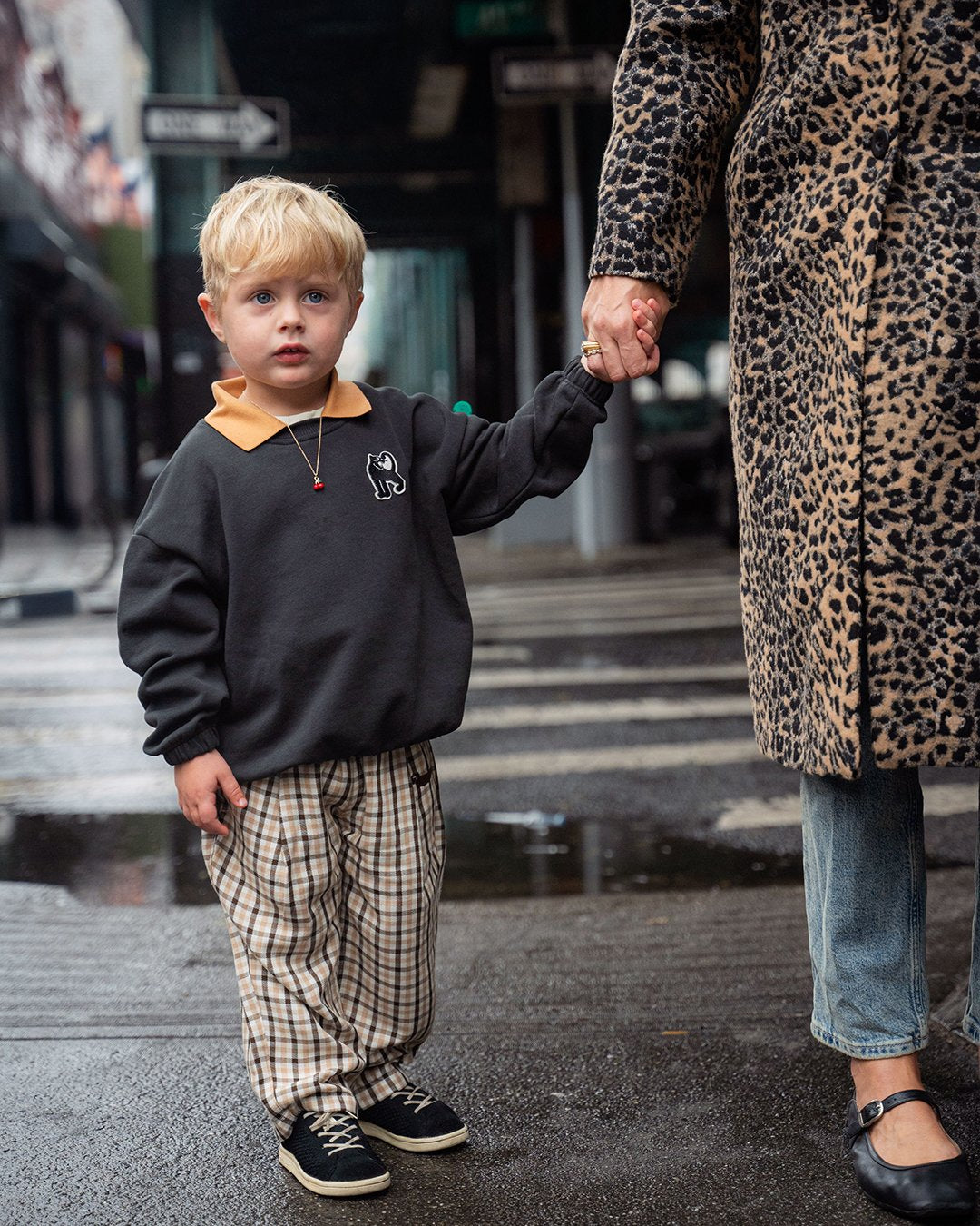 The Panther Patch Collar Sweatshirt is Mini Rodini doing what Mini Rodini does best: playful, practical, and just the right amount of attitude. This one takes a classic black sweatshirt and gives it a clever little twist — a contrast collar in warm beige that looks instantly pulled-together without a single thought from you or your kid. Front and centre sits the iconic panther patch, quietly cool and immediately recognisable to anyone who knows their kidswear icons.