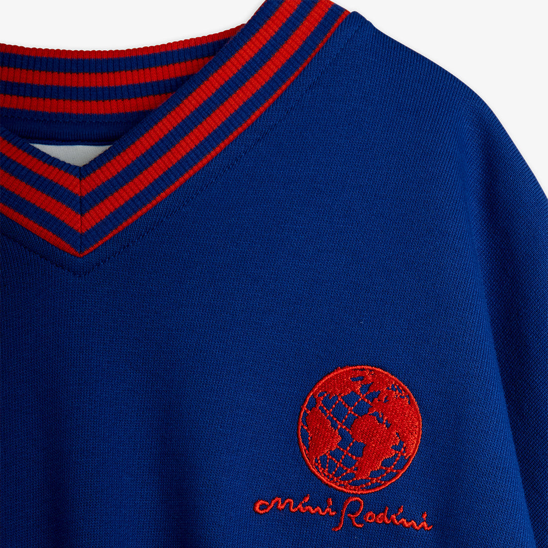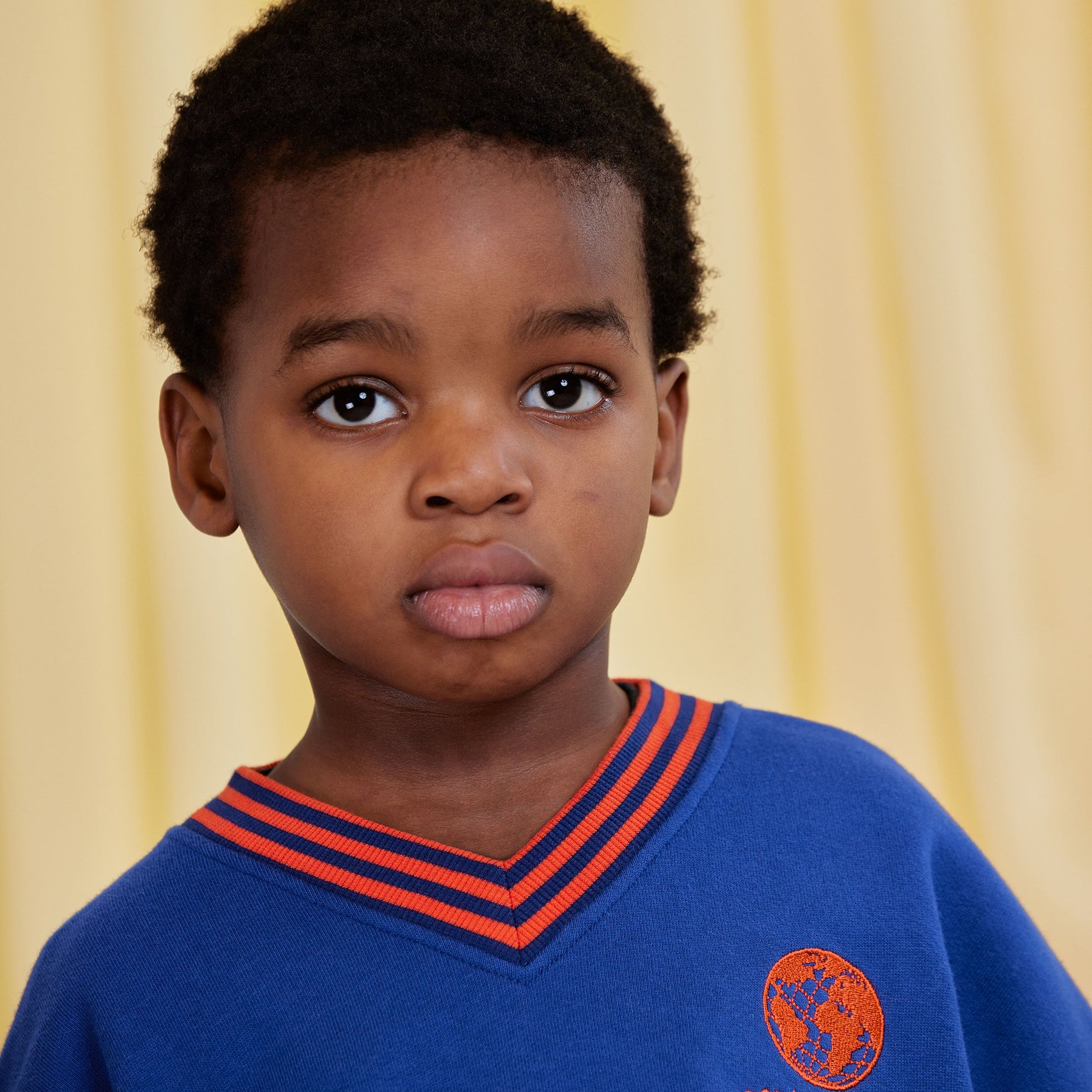 The Striped Rib Earth Embroidered Sweatshirt brings a hit of retro sportswear energy into the Mini Rodini universe — bold, graphic, and brilliantly easy to wear. The deep cobalt base instantly stands out, while the striped ribbed neckline, cuffs, and hem add that varsity-inspired contrast that somehow makes every outfit look more “put together” with absolutely zero effort. On the chest, you get a clean embroidered globe and the Mini Rodini script — subtle, classic, and a nice grounding detail against the brighter colours.