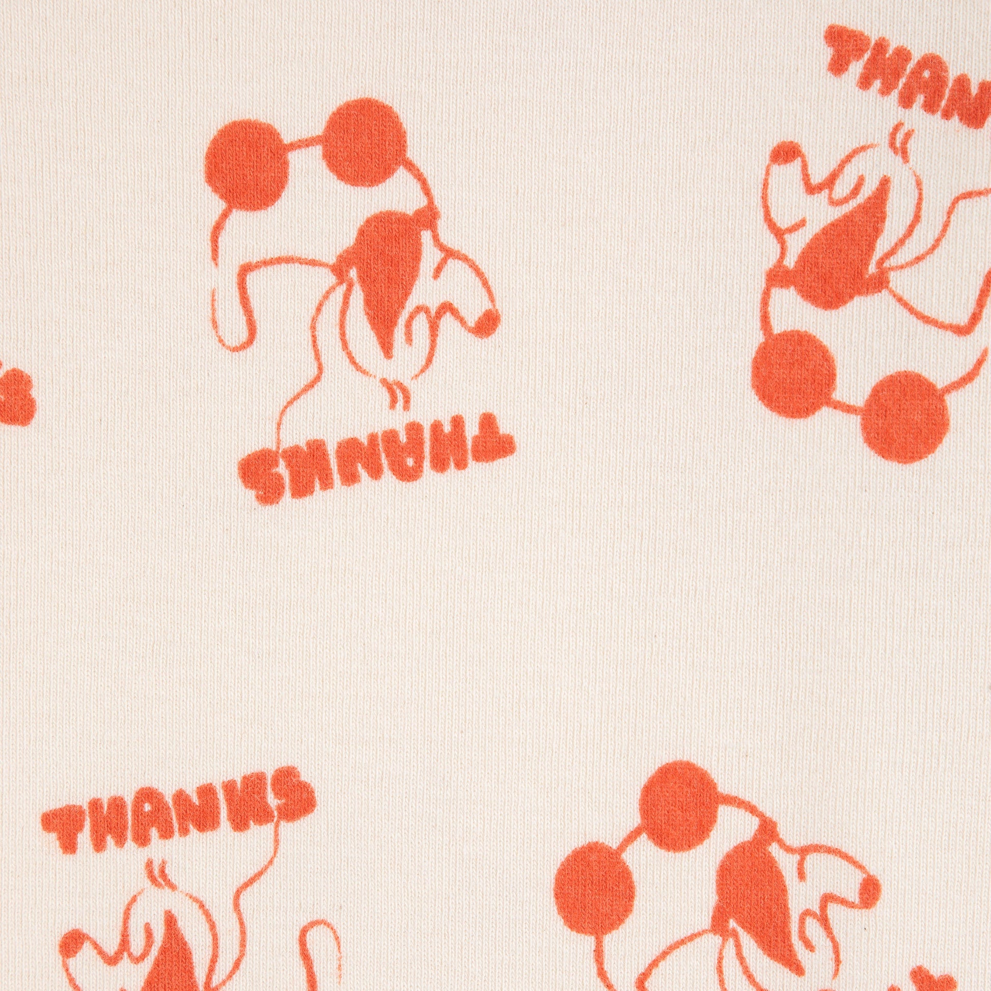 The Bobo Choses Rolling Dog Overall from the AW25 FUN capsule is here to prove that baby essentials can still have serious personality. Covered in Bobo’s signature rolling dog print and cheerful “THANKS” lettering, it’s playful, retro, and full of that offbeat charm we love from the brand. The creamy base and bright orange graphics give it a nostalgic, almost storybook feel — the kind of print that makes everyone smile the moment they see it.