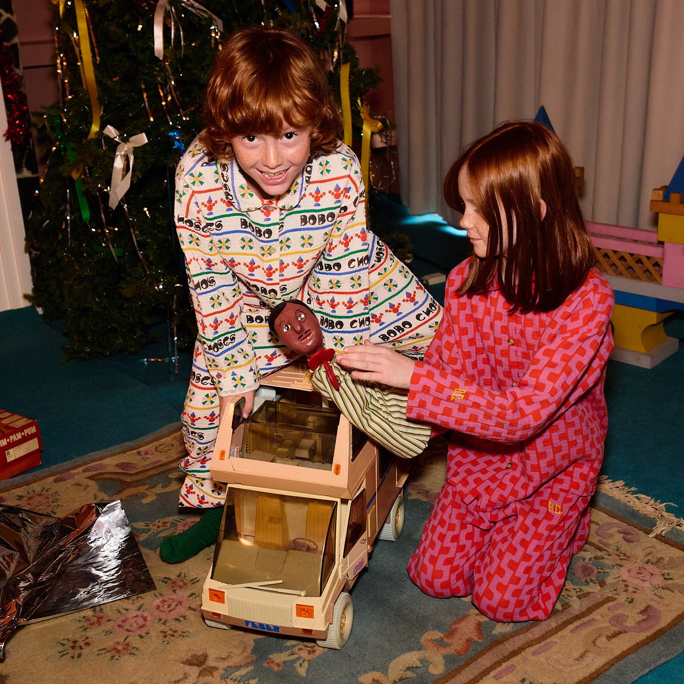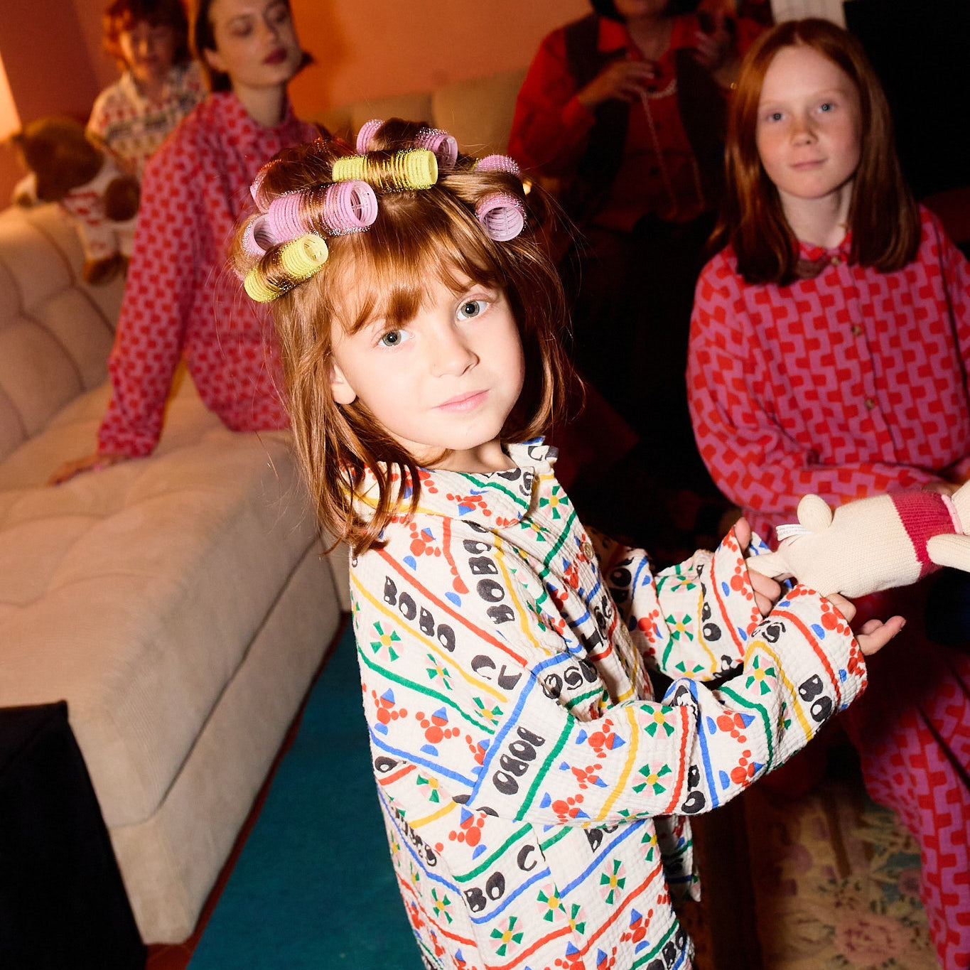 The Bobo Choses Toys All Over Loungewear Set from the AW25 FUN capsule is what happens when pyjamas decide to join the party. Covered head-to-toe in Bobo’s colourful toy-inspired print — think building blocks, playful patterns, and bold lettering — this matching shirt and trouser set turns bedtime (or sofa time) into a style statement. It’s unapologetically loud, proudly nostalgic, and full of that festive mischief that runs through the whole FUN collection.