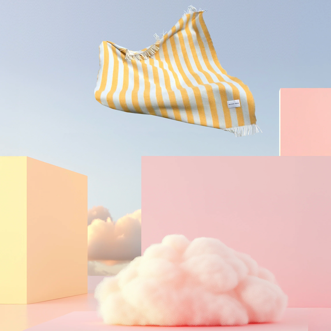 The Blue Honey Candy Wrap Blanket by Maison Deux is soft, sculptural minimalism at its most inviting. Jacquard-woven in Lithuania from 100% New Zealand wool, it features bold blue and honey-toned stripes with a mirror-inverted reverse for two looks in one. The thick, premium weave gives it substance without weight, while the fringed edges and stitched Maison Deux label keep it refined yet relaxed.
