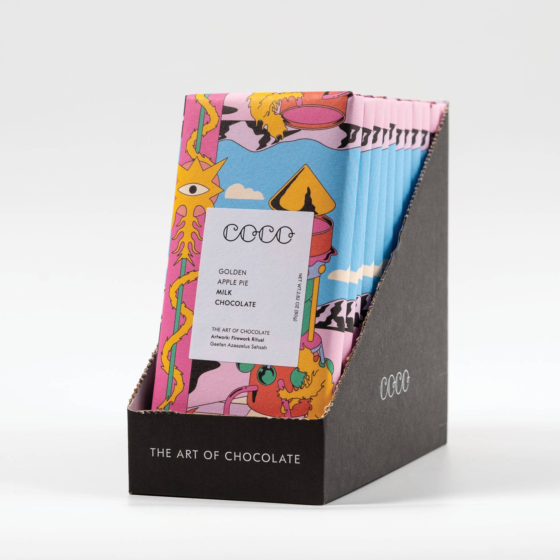 Beautifully presented in Coco’s signature artist-designed packaging, it’s the sort of bar that feels special before you’ve even unwrapped it. Ideal for thoughtful gifting, stocking fillers, or simply for when you want a moment of sweet nostalgia paired with rich, velvety chocolate. A slice of golden comfort—without ever turning on the oven.