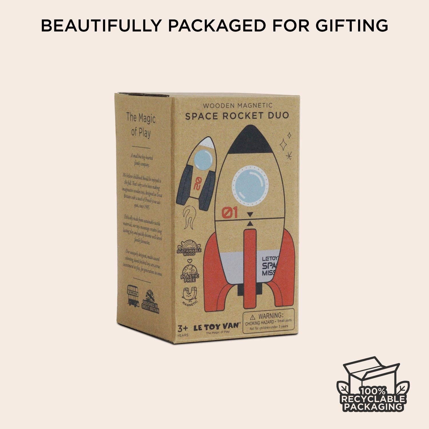 The larger rocket is satisfyingly chunky, smooth to hold, and ready for every mission they dream up. Pop off the magnetic lid and inside is its secret: a second mini rocket tucked neatly within, perfect for quick getaways, moon landings or whatever storyline your little explorer decides today. It’s simple, clever, and exactly the kind of detail that keeps kids playing for far longer than you expect.