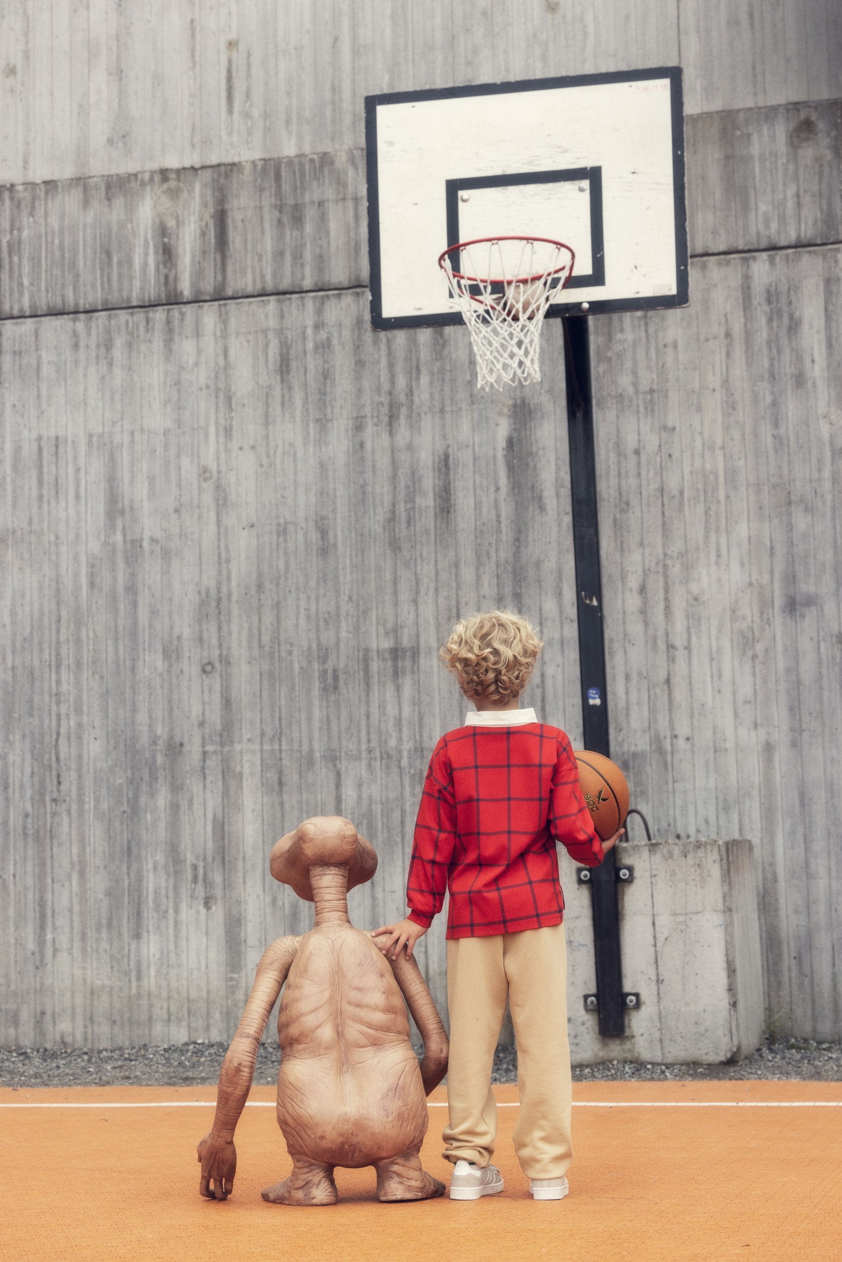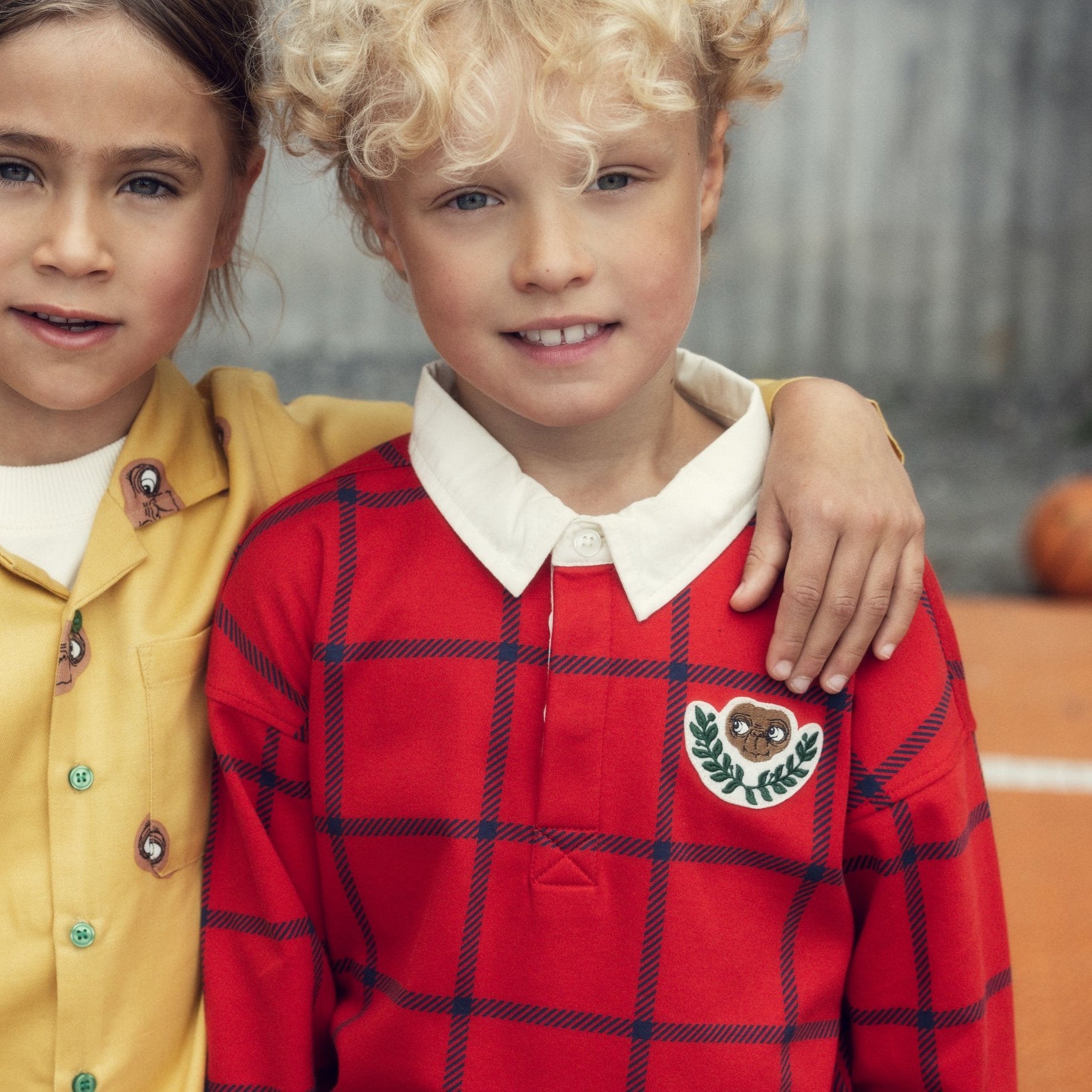 Mini Rodini takes the classic rugby shirt and gives it the most unexpectedly brilliant twist: a bold red check, a crisp contrast collar, and a tiny embroidered E.T. patch that turns this from preppy staple to cult favourite. It’s playful, slightly retro, and just the right amount of eccentric — exactly the energy you want from a piece that looks smart but still lets kids be kids.