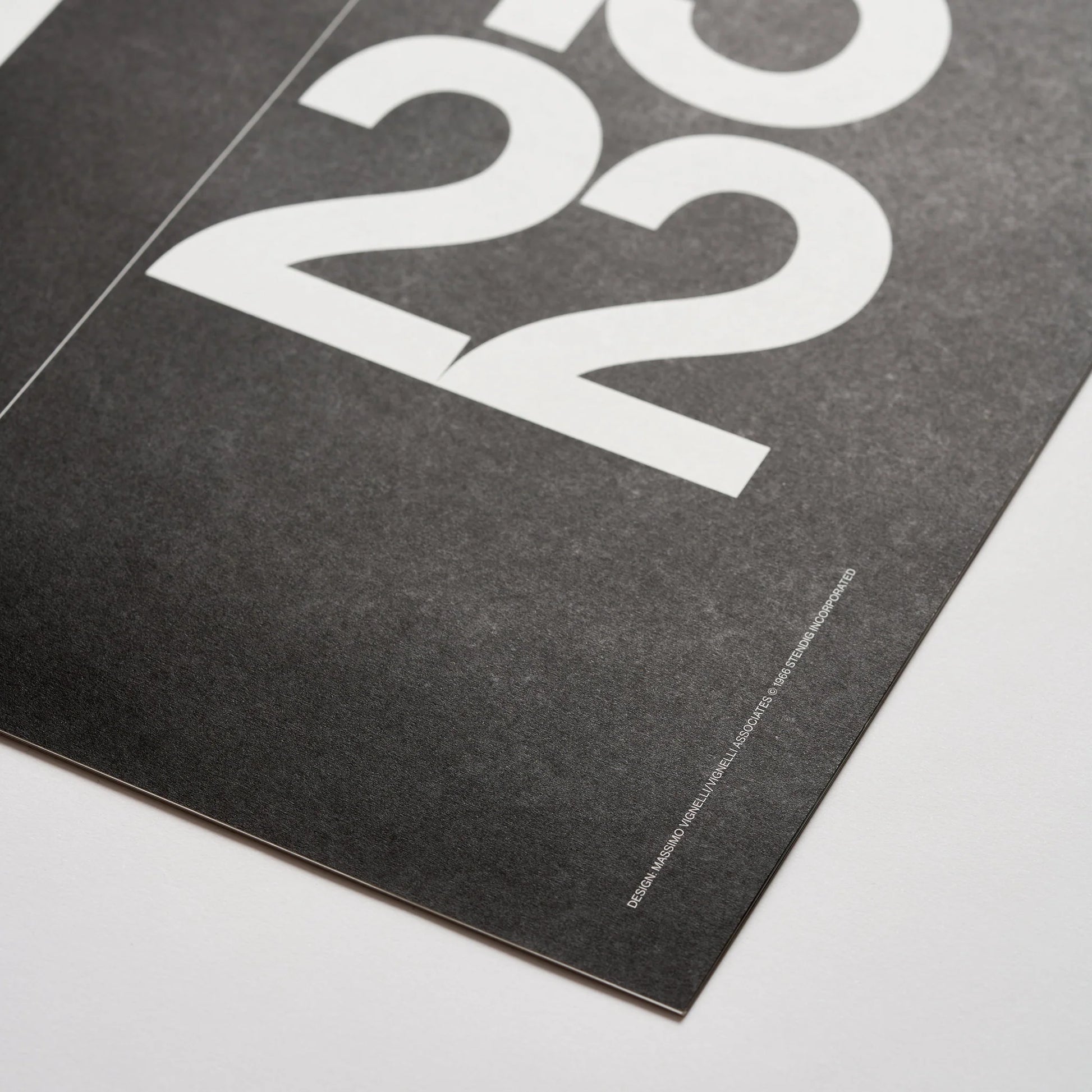 Each month alternates between black and white, its dates rendered in tightly kerned Helvetica, where even the subtle negative space between “kissing” numerals was carefully considered by Vignelli. He famously admired the form of the number 23 — a moment of graphic harmony that still feels timeless today.