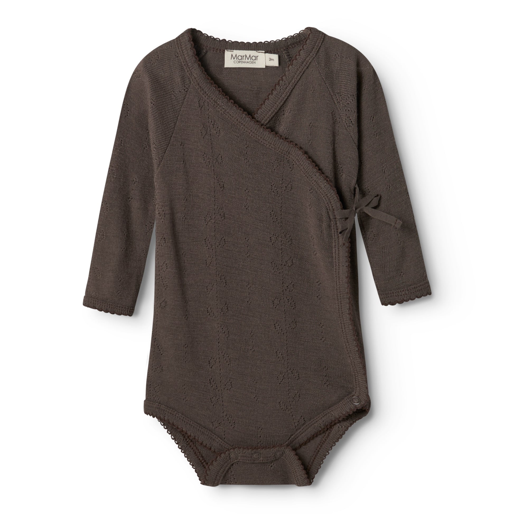 This Terre Belita merino wool pointelle body from MarMar Copenhagen brings a grounded, earthy feel to early baby dressing. Rich, warm and quietly confident, it’s a piece that feels intentional without trying to steal the spotlight.